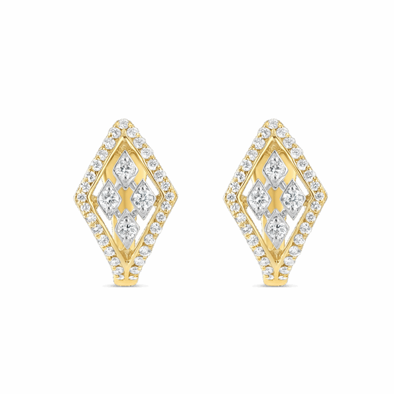 Bu 18 ayar sarı altın halka küpeler, yuvarlak pırlanta kesim pırlantalarla güzel bir şekilde vurgulanmış, eşkenar dörtgen şeklinde belirgin bir ön kısma sahiptir. Şık açık halka tasarımı, modern sofistikeliği klasik cazibeyle harmanlıyor. Hafif ve rahat olan bu küpeler hem günlük kullanım hem de özel günler için mükemmeldir ve görünümünüzü yükseltmek için doğru miktarda ışıltı katar. Her mücevher koleksiyonuna çok yönlü ve zarif bir ek.