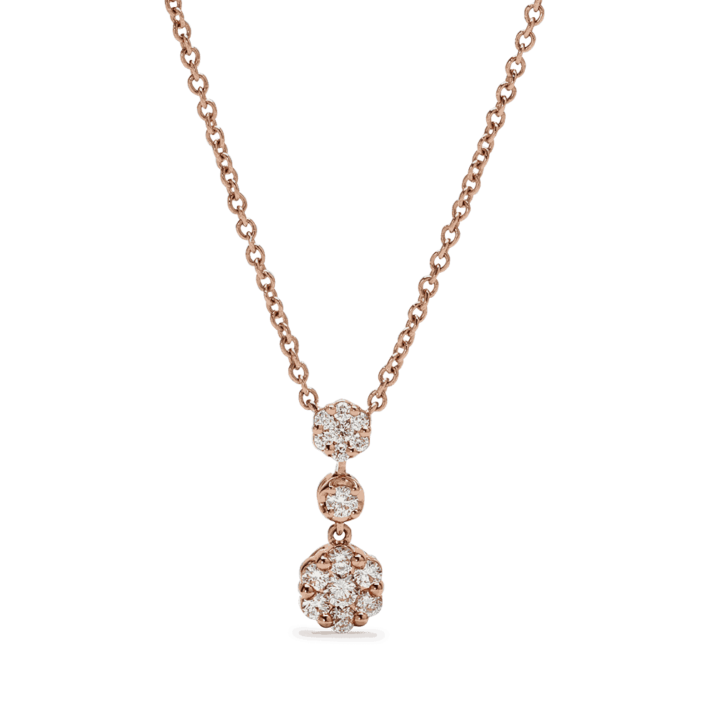 Ev " Mağaza " 18 Ayar Pembe Altın Pırlanta Salkım Damla Kolye