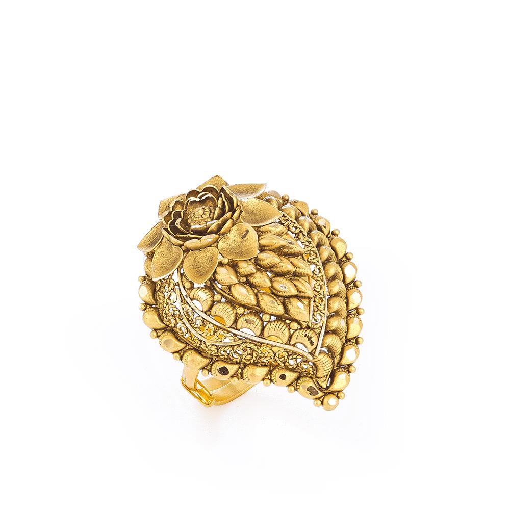 22 ayar altın antika kaplama çiçek desenli gösterişli yüzük Sipariş Verilebilir