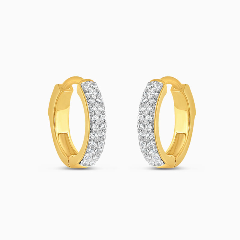 Işıltılı 22 ayar altından üretilen bu pavé-set huggie halka küpeler, hassas kesim taşlarla ışıldıyor. Günlük lüks ve zamansız zarafetin mükemmel birleşimi.