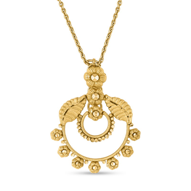 Rosettes Koleksiyonumuzun zarif güzelliğini keşfedin 22ct Gündoğumu Altın KolyeZamansız zarafeti ve karmaşıklığı bünyesinde barındıran çarpıcı bir parça zanaatkarlık. En iyi 22 ayar altından üretilen bu kolye ucu, aşkı, güzelliği ve kalıcı zarafeti simgeleyen zarif bir rozet tasarımına sahiptir.